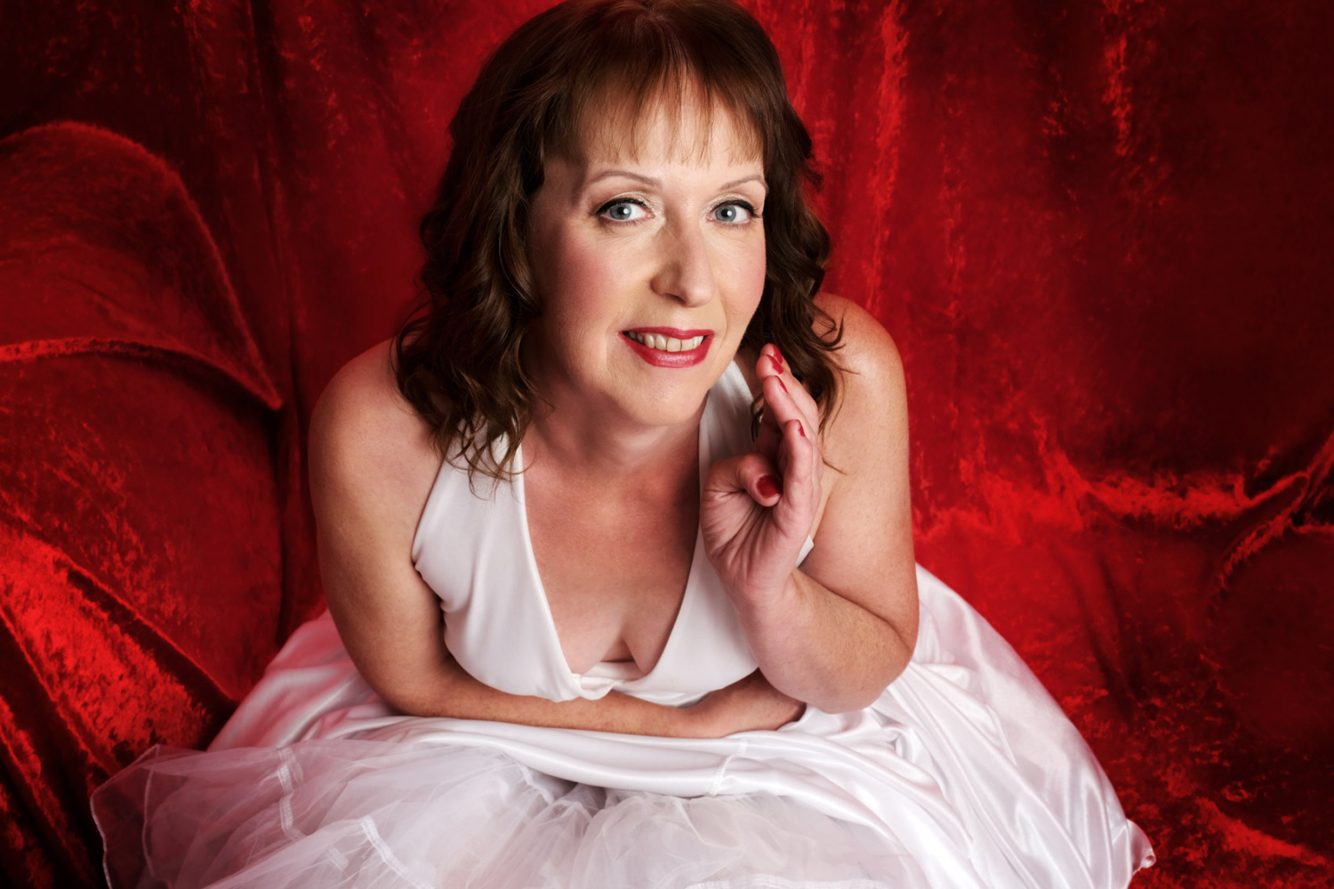 The day of the shoot arrived – Lorraine was so lovely, she enjoyed her makeover and with our makeup artist, Kay’s help we created her own kind of Marilyn look complete with the iconic Red nails and Lipstick. We were lucky enough to have the “ Marilyn style white dress ” to start with so Lorraine was able to get used to being in front of the camera. The Iconic red velvet images followed later and all the hard work and effort form everyone really paid off. Lorrain loved her pictures and has kindly let us share a few with you.